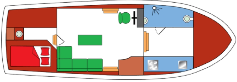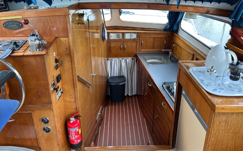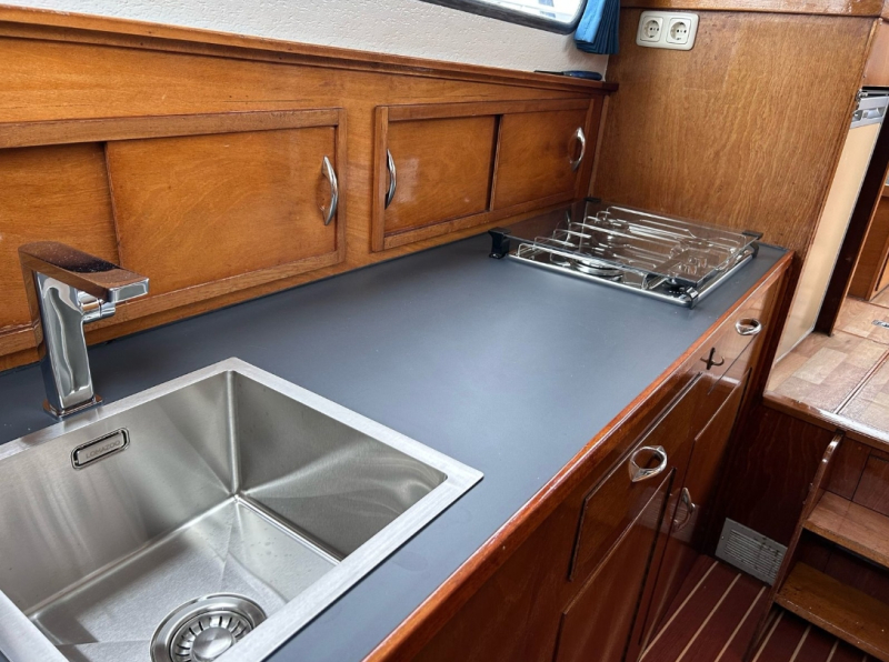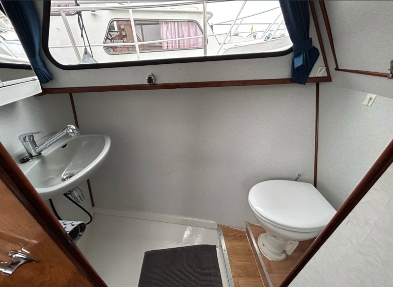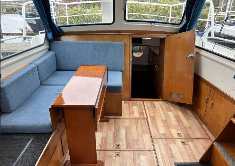 Mit der Motoryacht „Dolfijn“ können 2-4 Personen in See stechen. Die Yacht verfügt über eine Schlafkabine mit einem Doppelbett und viel Stauraum. 2 weitere Personen können im Salon nach Umbau der Dinette (Essecke) schlafen. Desweiteren ist sie mit einem Bad mit Dusche, WC und Waschbecken ausgestattet.