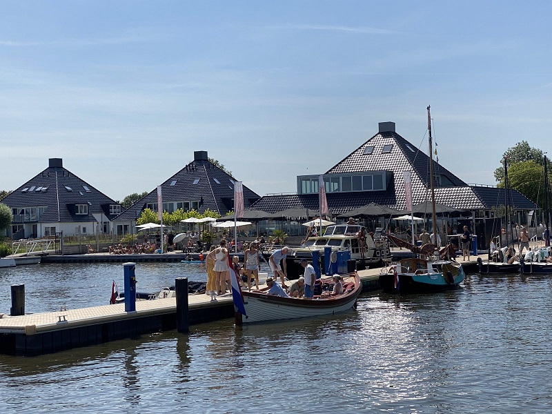 Das Hausboot „Elysium“ liegt beim Beachclub in NL-Offingawier mit freiem Blick auf das Sneekermeer.