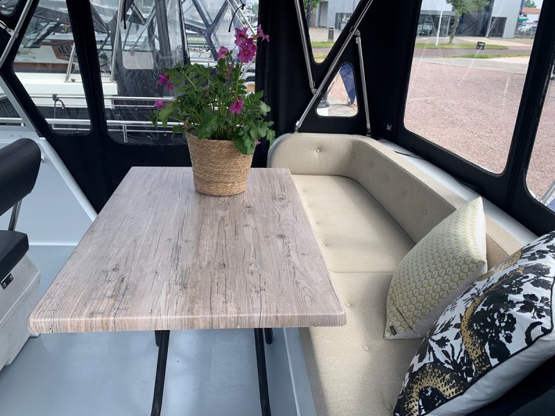 Eine gemütliche Yacht mit einem großen Achterdeck. Deckstühle und Tisch sind an Bord. Im Vorschiff finden Sie eine Schlafkabine mit 1 Doppelbett umzubauen nach 2 Einzelbetten mit viel Stauraum. Im Bug ist ein Toilettenraum mit elektrischer Toilette, Waschbecken und eine 2. Dusche.